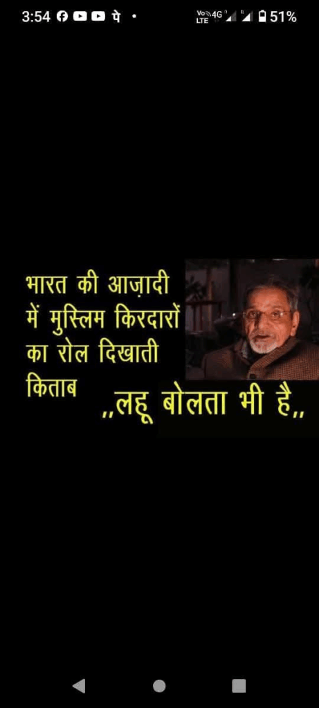 “हिंदुस्‍तान की आज़ादी के ….. साल पूरे हो चुके है इतने अरसे बाद भी उन हिंदुस्‍तानी मुसलमानों को शक की निगाह से देखा जा रहा है जिन्‍होंने इस मुल्‍क की मिट्टी की मौहब्बत में मौतबादिल (विकल्‍प) रहते हुए भी अपनी खुशी से अपना वतन माना और यहाँ रहना पसंद किया था। मुल्‍क के लिए उनकी ही वफादारी पर उंगलियां उठाई जा रही है और वह भी किसके ज़रिये जिनका मुल्‍क को आज़ादी के लिए सौ साल तक चले मुसलसल, जद्दोजहद में कहीं नामोनिशान नहीं था। इस किताब के जरिये मेरी कोशिश है कि हमारा मुल्‍क कौमी एकजहती भाई-चारे मेल मिलाप और मुल्‍क में रहने वालों के तमाम मजाहिब का एहतराम (सभी धर्मों का सम्‍मान) करते हुए आगे बढ़े और तरक्‍की को जिसके ख्‍वाब हमारे शहीददाने वतन ने देखे थे।”