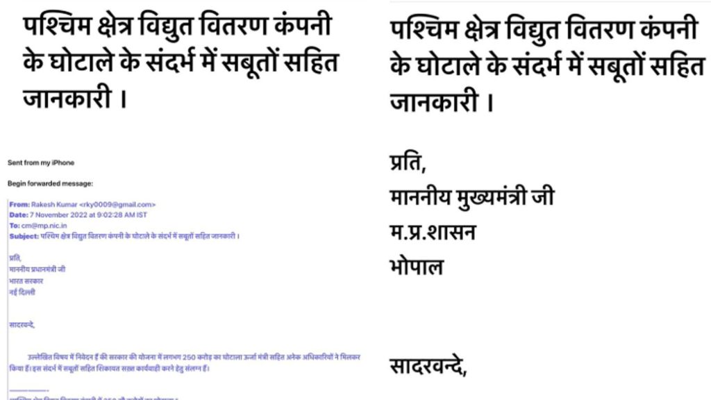 म.प्र कांग्रेस कमेटी के प्रदेश सचिव राकेश सिंह यादव का कहना है कि उनके पास इस विद्युत वितरण कंपनी के घोटाले के सबूत है। इन सबूतों के आधार पर उन्होंने इसकी शिकायत भारत सरकार, सीएम शिवराज सिंह चौहान, लोकायुक्त, आर्थिक अपराध में की हैं। साथ ही सीएम से तीन मांग भी की है।