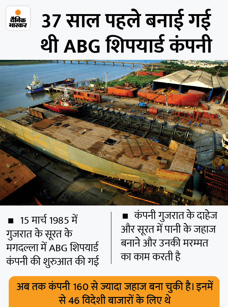 - ABG शिपयार्ड कंपनी को 28 बैंकों के कन्सोर्टियम ने 2001 से लोन देना शुरू किया। इसके बाद 2013 से कंपनी घाटे में जाने लगी। इसने लोन चुकाना बंद कर दिया। नवंबर 2013 में इस लोन एकाउंट को NPA यानी नॉन परफॉर्मिंग एसेट घोषित कर दिया गया।