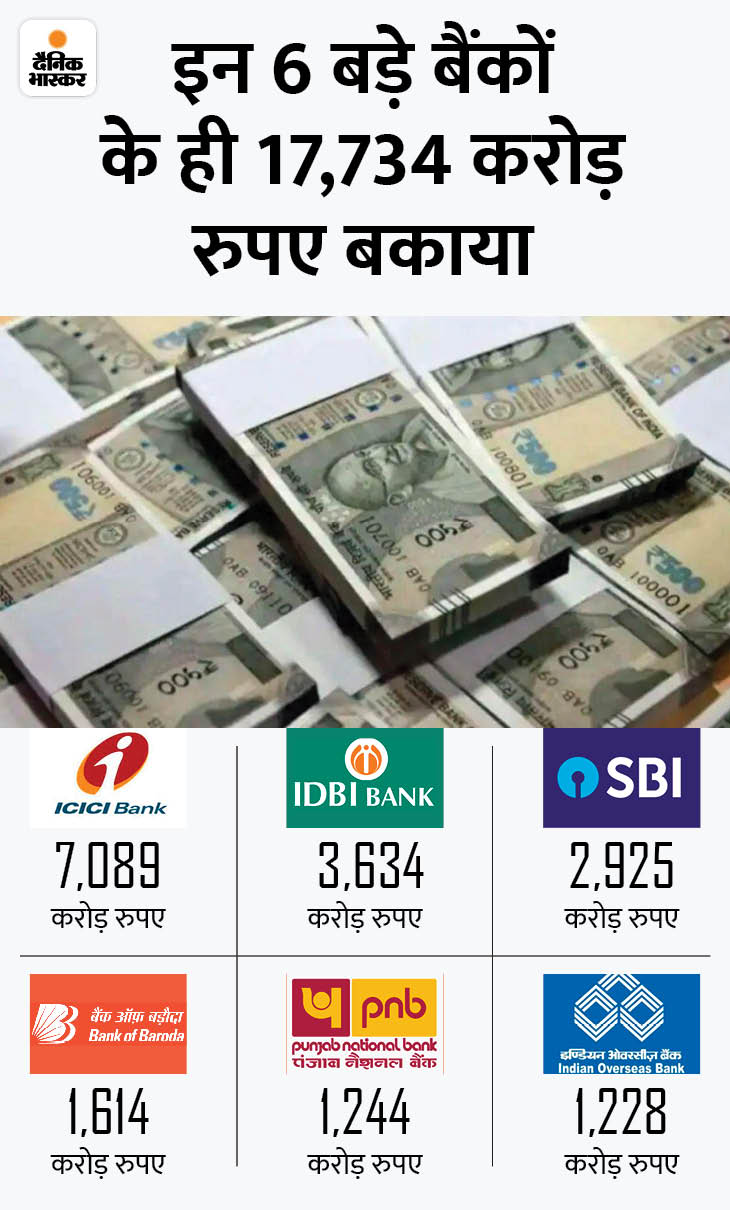 - आईसीआईसीआई के बाद सबसे ज्यादा लोन 3,634 करोड़ रुपए आईडीबीआई बैंक ने दिए थे। इसके अलावा SBI ने 2,925 करोड़ रुपए, बैंक ऑफ बड़ौदा ने 1,614 करोड़ रुपए, पंजाब नेशनल बैंक ने 1,244 करोड़ रुपए और इंडियन ओवरसीज बैंक ने 1,228 करोड़ रुपए दिए थे।