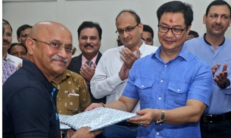 इस तस्वीर में एक कार्यक्रम में तब के केंद्रीय खेल मंत्री किरण रिजिजू से सम्मानित होते हॉकी कोच महाराज किशन कौशिक दिख रहे हैं। बाद में उत्पीड़न के आरोप में इन्हें अपना पद छोड़ना पड़ा था।