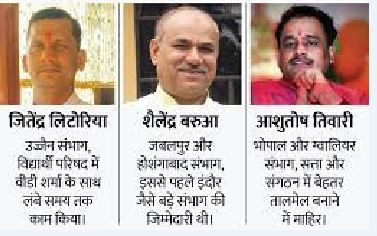 बीजेपी सूत्रों ने बताया कि राष्ट्रीय स्वयं सेवक संघ से भाजपा में आए इन नेताओं को प्रदेश में बड़ी जिम्मेदारी दिए जाने के कयास कई दिनों से लगाए जा रहे थे, क्योंकि बीजेपी संभाग और जिलों में संगठन को नया स्वरूप देना चाहती है। ऐसा पहली बार हो रहा है, जब बीजेपी के जिलों में तैनात संगठन मंत्रियों को भी हटाया जा रहा है। इन्हें प्रदेश कार्यकारिणी या अन्य पदों पर एडजस्ट करने की तैयारी है। नई व्यवस्था के तहत संभागीय मुख्यालयों में संगठन मंत्री रहेंगे।