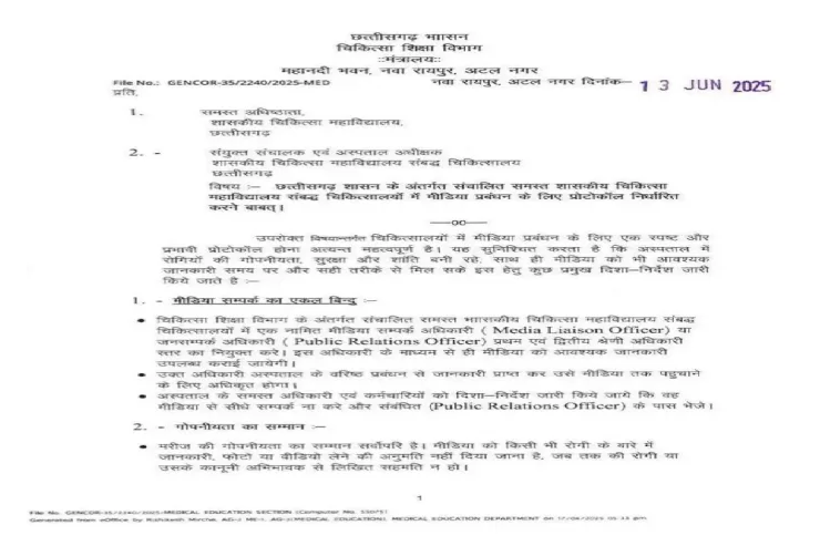 वार्ड में भर्ती किसी भी रोगी का फोटो, वीडियो या जानकारी लेने नहीं दी जाए। किसी भी घटना-दुर्घटना पर रोगियों का नाम और पहचान न बताई जाए। मीडिया को सख्त हिदायत दी गई कि अस्पताल परिसर में जाने से पहले पीआरओ की अनुमति लें।