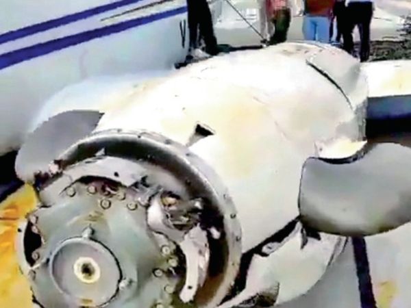 विमान की कॉकपिट, प्रोपैलर ब्लैड, व्हील सब टूट गए थे