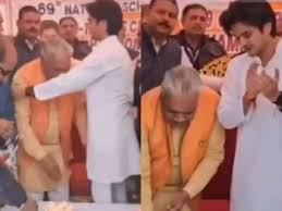 दरअसल, शिवपुरी स्टेडियम में आयोजित एक कार्यक्रम के दौरान देवेंद्र जैन महाआर्यमन सिंधिया समेत कई लोगों मंच पर मौजूद थे। जैसे ही मंच पर विधायक जी ने केक काटा। मौके पर मौजूद महाआर्यमन खड़े होकर ताली बजाने लगे। इसके बाद उन्होंने उम्र में छोटे महाआर्यमन सिंधिया के पैर छू लिए।