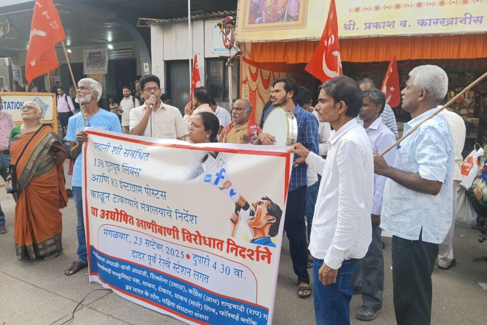 उद्योगपति गौतम अडानी संबंधित लेख, यूट्यूब वीडियो और इंस्टाग्राम पोस्ट हटाने के केंद्र सरकार के फरमान के खिलाफ वामपंथी पार्टियों और सामाजिक संगठनों ने मंगलवार (23 सितंबर) को मुंबई के दादर रेल्वे स्टेशन के बाहर विरोध प्रदर्शन किया।विभिन्न वक्ताओं ने कहा कि “गोदी मीडिया” पर पूर्ण नियंत्रण के बाद सरकार सोशल, डिजिटल मीडिया के पीछे पड़ी हुई है और स्वतंत्र पत्रकारिता का गला घोंटना चाहती है। वक्ताओं ने कहा कि नरेंद्र मोदी सरकार तरह तरह से ऐसे पत्रकारों और स्वतंत्र मीडिया संस्थाओं को परेशान कर रही है जो आलोचनात्मक हैं।
