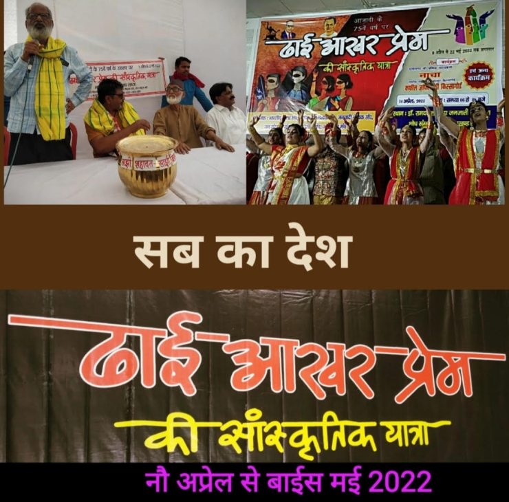 ऐसे माहौल में ‘ढाई आखर प्रेम की सांस्कृतिक यात्रा का संदेश देते पोस्टर, बैनर से सजी बस एकाएक मैदान में प्रवेश करती है।