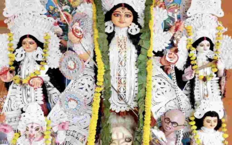 देवी दुर्गा के हाथ से कराया गया एक अपवित्र कृत्य:पूजा पांडाल में गांधी वध