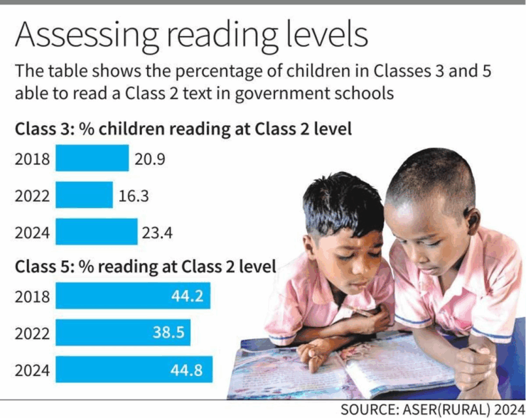इस वर्ष ‘असर’ के सर्वेक्षण में देश के 605 ग्रामीण जिलों के लगभग अठारह हजार गाँवों के साढे छ: लाख बच्चों को शामिल किया गया था। रिपोर्ट बताती है कि कक्षा 1 से 3 तक के बच्चों की पढ़ने और गणित की क्षमता में वर्ष 2022 की तुलना में उल्लेखनीय सुधार हुआ है। 3 से 6 वर्ष के बच्चों को लेकर महत्वपूर्ण निष्कर्ष सामने आए हैं। पहला, 2018 से 2024 के बीच पूर्व-प्राथमिक स्‍कूलों के नामांकन में उल्लेखनीय वृद्धि हुई है। दूसरा, वर्ष 2024 तक 3 वर्ष की आयु के 77.4 फीसदी ग्रामीण बच्चे किसी-न-किसी प्रारंभिक शिक्षा कार्यक्रम में नामांकित हो सके हैं। खास बात यह है कि यह प्रगति ग्रामीण इलाकों में भी देखी गई है।