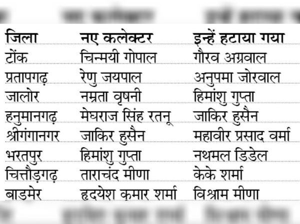 राज्य में तीन विधानसभा सीटों के लिए चल रहे उपचुनाव के बीच में ही सरकार ने बुधवार रात 1:25 बजे ब्यूरोक्रेसी में बड़ा फेरबदल कर दिया। कार्मिक विभाग की ओर से जारी आदेश में 67 आईएएस अफसरों को इधर से उधर किया गया है। इसके अलावा टोंक और भरतपुर समेत 8 जिलों के कलेक्टर और समित शर्मा समेत 2 संभागीय आयुक्त भी बदले गए हैं। राजस्थान में पहली बार ब्यूरोक्रेसी की परंपरा भी टूट गई। 1989 बैच के मुख्य सचिव निरंजन आर्य के मातहत 1988 बैच के आईएएस सुबोध अग्रवाल को लगाया गया है।