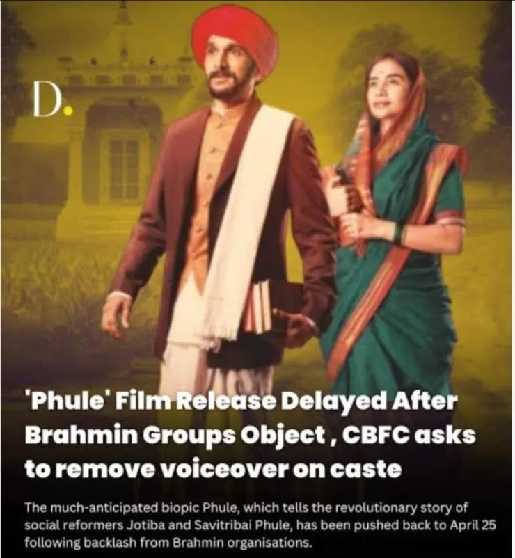 11 अप्रैल को जोतिबा फुले के जीवन पर आधारित एक फिल्म रिलीज़ होनी थी ; इस दिन जोतिबा का जन्मदिन भी पड़ता है। सेंसर बोर्ड ने इसे रिलीज़ होने से रोक दिया। उसने इस करीब दो घंटे की फिल्म में कम-से-कम 12 सीन और संवादों को हटाये जाने के निर्देश दिए। इन कटौती में कई ऐसे सीन हटाए गए हैं, जो जाति-आधारित भेदभाव को दिखाते थे, उस अन्याय और अत्याचार को दिखाते थे, जिनके खिलाफ लड़ना और उसे भोगना फुले दंपत्ति की पहचान है।