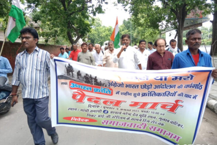 दिल्ली के सोशलिस्ट पिछले 70 सालों से 9 अगस्त के क्रांतिकारियों की याद में प्रभात फेरी, जुलूस निकालते रहे हैं। आज भी प्रातः महात्मा गांधी की समाधि राजघाट पर नमन करने के बाद साथियों ने पैदल नारे लगाते हुए ‘अगस्त के शहीदों को भूलो मत, भूलो मत, 42 के शहीदों को भूलो मत भूलो मत, ‘अंधेरे के तीन प्रकाश गांधी लोहिया जयप्रकाश’ महात्मा गांधी अमर रहे अमर रहे, इंकलाब जिंदाबाद अरुणा लोहिया जयप्रकाश, नारा लगाते हुए आचार्य नरेंद्र देव की मूर्ति स्थल गुलाब वाटिका तक जुलूस निकाला