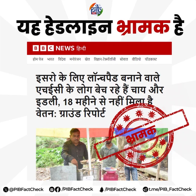 बीबीसी में प्रकाशित इस ख़बर के बाद भारत सरकार के पत्र सूचना कार्यालय (पीआईबी) ने फैक्ट चेक किया. पीआईबी ने कहा कि बीबीसी ने अपने एक आर्टिकल की हेडलाइन में दावा किया है कि इसरो के लिए लॉन्चपैड बनाने वाले हैवी इंजीनियरिंग कॉरपोरेशन लिमिटेड (एचईसी) के कर्मचारियों का 18 महीने का वेतन बकाया है. यह हेडलाइन भ्रामक है.