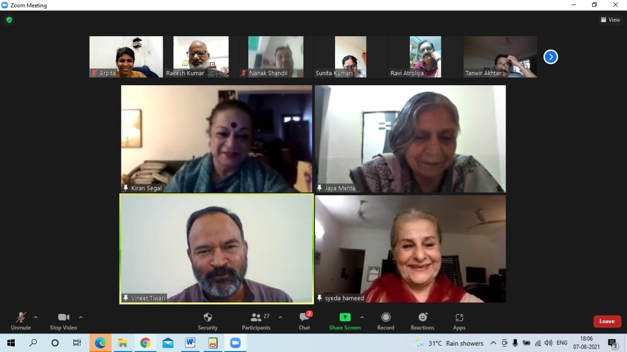 प्रस्तुतिकरण के बाद उपस्थित साथियों में से रवि अतरोलिया (इंदौर), तपस्या शादान (बिहार), शशिभूषण (उज्जैन), तनवीर अख्तर (पटना), वरिष्ठ पत्रकार रामशरण जोशी (दिल्ली) ने महत्त्वपूर्ण बातें जोड़ीं। इस प्रस्तुतिकरण और चर्चा के दौरान पदमश्री ओडिसी नृत्यांगना और जोहरा सहगल की बेटी किरण सहगल, एनी राजा, अशिमा राय चौधरी, कृष्णा मजूमदार, कोनीनिका रे, नीलाक्षी सूर्यनारायण, मोहिनी गिरी, राजीव कुमार शुक्ल,स्वाति मौर्य, अटल तिवारी (दिल्ली), सुनीता कुमारी, संजय सिन्हा (पटना), ज्योत्स्ना रघुवंशी, विजय (आगरा), बेनेडिक्ट डामोर (झाबुआ), अहमद बद्र, अर्पिता, ज्योति-शेखर मलिक, मिथिलेस सिंह (झारखंड), उषा आठले, ऐश्वर्या, राजेंद्र गुप्त, विजय कुमार (मुंबई), दिव्या भट्ट (बंगलौर), रामदुलारी शर्मा, अमरसिंह, सुरेंद्र रघुवंशी (अशोकनगर), कृष्णा दुबे (गुना), हरनाम सिंह, असद अंसारी (मंदसौर) गीता दुबे (कोलकाता), नथमल शर्मा, लोकबाबू, मणिमय मुखर्जी, राजेश श्रीवास्तव, प्रितपाल सिंह, निसार अली (छत्तीसगढ़), अनिलरंजन भौमिक (इलाहबाद), शैलेन्द्र अवस्थी (जयपुर), सैय्यद शमशुद्दीन (कराची-पाकिस्तान), परशुराम तिवारी (झाँसी) जे पी तिवारी, सुरेश उपाध्याय, विवेक मेहता, अरविन्द पोरवाल, विजय दलाल, शिवाजी मोहिते, शबाना पारीख, सुनील चंद्रन (इंदौर), नानक शांडिल्य (हिमाचल प्रदेश), जमुना बीनी (अरुणाचल प्रदेश), डॉ आसिया पटेल, मेधा थत्ते (पुणे), सत्येंद्र भारिल (राजगढ़), सत्येंद्र कुमार शेंडे (सिवनी), राजनारायण बोहरे (दतिया), हिम्मत चंगवाल, थनसिंह (राजस्थान), नरेश चन्द्रकर (गुजरात), राकेश वानखेड़े (नासिक) सहित देश-विदेश से हजारों लोग शामिल हुए।