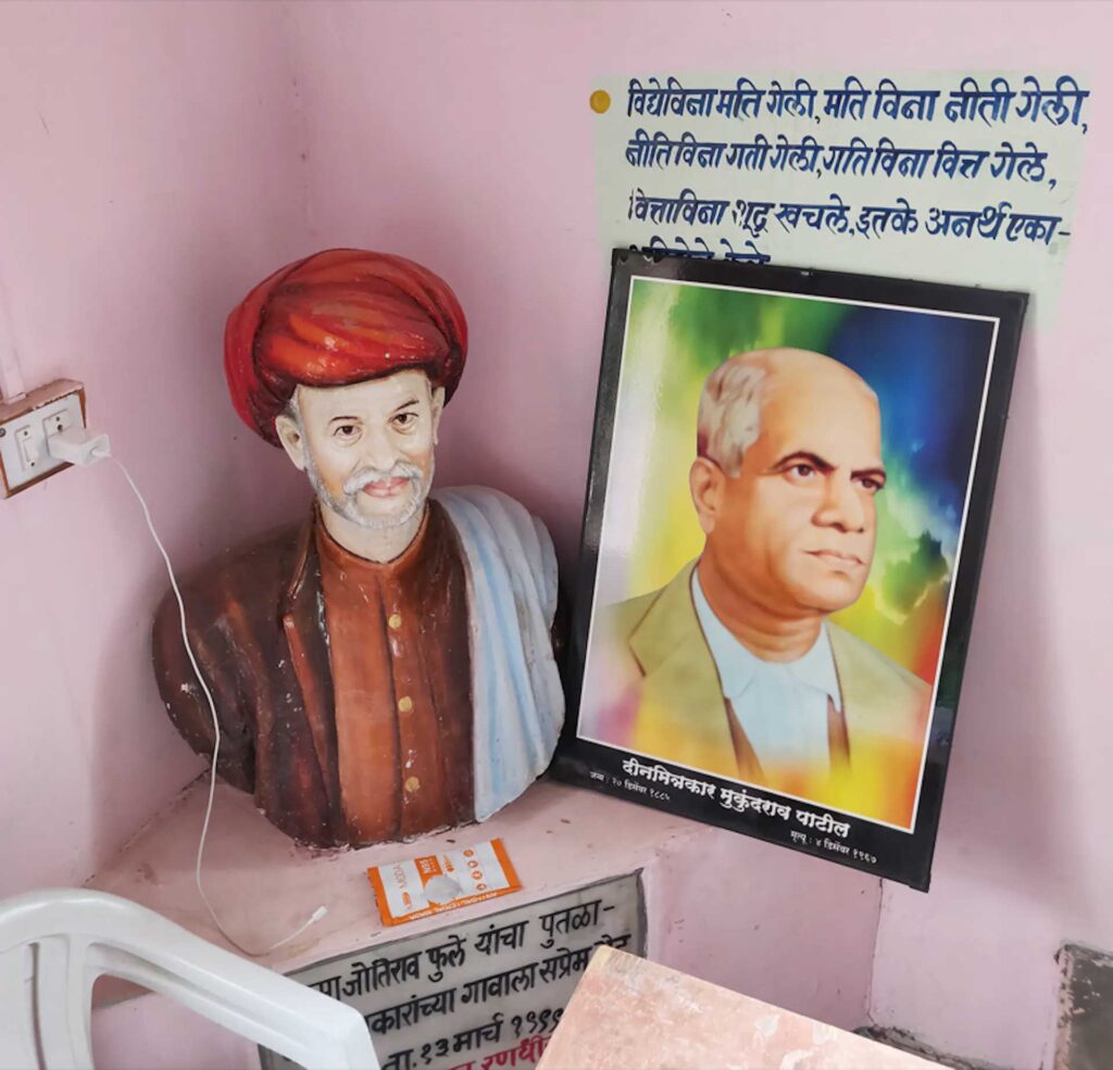केंद्र के मुख्य कक्ष में मुकुंदराव के चित्र लगे हैं। साथ में, कुछ वरली पेंटिंग हैं और सत्यशोधक आंदोलन के सदस्यों के फ्रेम किये हुए फोटो भी। दो छोटे कमरों में मेरे जैसे शोधार्थी के लिए एक बड़ा खजाना है। यहां बीसवीं सदी की शुरुआत की किताबों, पत्रों, पुस्तिकाओं और पर्चों को बहुत सावधानी से संभाल कर रखा गया है। पतली से पतली पुस्तिका को भी प्लास्टिक के फोल्डरों में रख कर उसके ऊपर स्पष्ट लेबिल लगाए गए हैं। मुख पृष्ठ पर बड़े, काले अक्षरों में शीर्षक लिखे हैं।