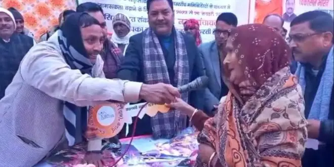 बीजेपी के कार्यक्रम के दौरान मंच पर बीजेपी सांसद धर्मेंद्र कश्यप, बदायूं सांसद संघमित्रा मौर्य, जिलाध्यक्ष राजीव कुमार गुप्ता, पूर्व मंत्री सदर विधायक महेश चंद्र गुप्ता, दातागंज विधायक राजीव कुमार सिंह समेत कई नेता और कार्यकर्ता मौजूद रहे. इस दौरान ‘पीएम आवास योजना’ के लाभार्थियों को चाबी सौंपने का कार्यक्रम चला. इसी क्रम में बुजुर्ग महिला शारदा देवी को बुलाया गया.