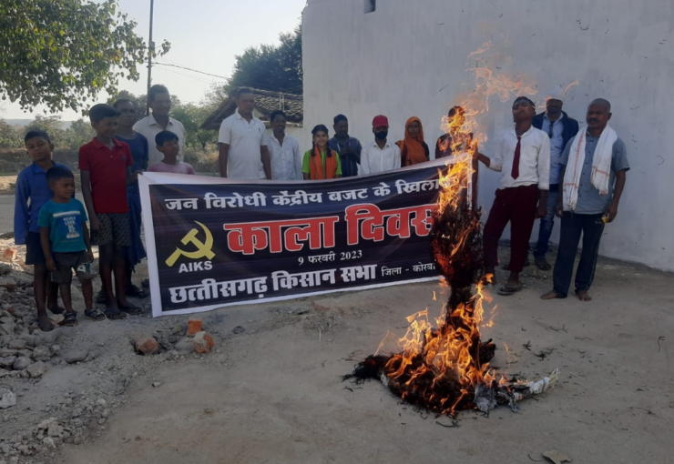 कोरबा। अखिल भारतीय किसान सभा और खेत मजदूर यूनियन के देशव्यापी आह्वान पर कोरबा में छत्तीसगढ़ किसान सभा ने जन विरोधी केंद्रीय बजट के खिलाफ गंगानगर, मड़वाढोढा,पुरैना समेत कई गांवों में प्रदर्शन और पुतला दहन करते हुए ‘काला दिवस’ मनाया।