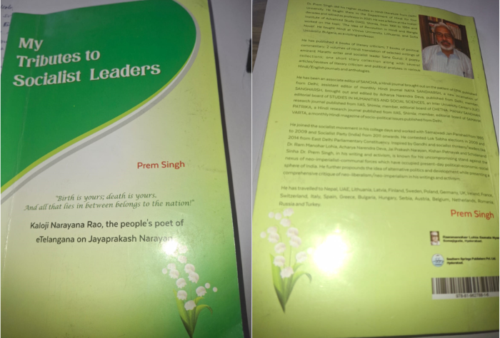 इसी पृष्ठभूमि में डॉ. प्रेम सिंह द्वारा लिखित पुस्तक {माई ट्रिब्यूट्स टू सोशलिस्ट लीडर्स, हैदराबाद: सदर्न स्प्रिंग्स पब्लिशर्स प्राइवेट लिमिटेड, जून 2024, पृष्ठ 125, मूल्य, रु. 250) जिसमें 16 श्रद्धांजलि और सच्चर कमेटी रिपोर्ट (2006) पर एक अध्याय है] सबसे अधिक प्रासंगिक है। मेरी राय में, कुछ समाजवादी नेता लोगों के बीच जाने जाते हैं, और कुछ गुमनाम नायक होते हैं। जनता के बीच चर्चित समाजवादी नेताओं में मधु लिमये, चंद्रशेखर, सुरेन्द्र मोहन, मृणाल गोरे, जस्टिस सच्चर, जॉर्ज फर्नांडीज और कर्पूरी ठाकुर शामिल हैं। गुमनाम नायकों की श्रेणी में कृष्ण पटनायक, बृजमोहन तूफान, प्रोफेसर विनोद प्रसाद सिंह, कामरेड सुनील, केसला, भाई वैद्य, प्रोफेसर केशव राव जाधव और रघुवंश प्रसाद शामिल हैं।