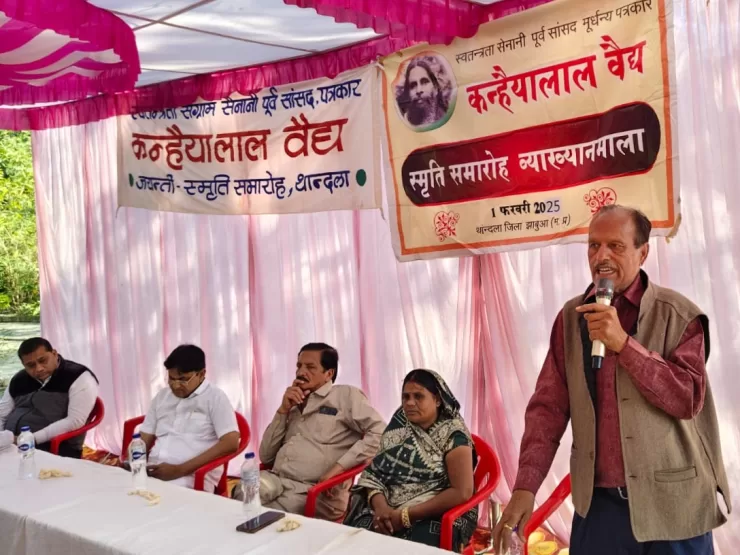 स्व.वैद्य की जन्म स्थली थांदला के नगर परिषद प्रांगण में आयोजित कार्यक्रम की मुख्य अतिथि परिषद की अध्यक्ष लक्ष्मी सुनिल पण्दा थी । अध्यक्षता नगर परिषद के पूर्व उपाध्यक्ष अशोक अरोरा ने की । विशेष अतिथि स्वाधीनता संग्राम सेनानी उत्तराधिकारी संगठन के सदस्य एवं नगर परिषद के पूर्व उपाध्यक्ष जितेन्द्र घोडावत थे । राष्ट्रीय पत्रकार मोर्चा भारत के राजेन्द्रसिंग चैहान एवं ललित चैपडा रतलाम ने भी मंच साझा किया ।
