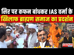 भोपाल में IAS संतोष वर्मा द्वारा ब्राह्मण समाज की बेटियों पर दिए आपत्तिजनक बयान के विरोध में ब्राह्मण समाज और सवर्ण कर्मचारी संगठन सड़कों पर उतर आया. सिर पर कफन बांधकर परशुराम मंदिर से अजाक्स कार्यालय घेरने निकले प्रदर्शनकारियों को पुलिस ने रोक लिया, जिसके बाद वे सड़क पर बैठकर हनुमान चालीसा पढ़ने लगे. संगठन IAS संतोष वर्मा की बर्खास्तगी और गिरफ्तारी की मांग कर रहा है.