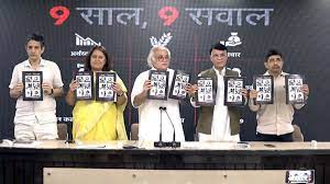 दिल्ली में कांग्रेस ने प्रेस कॉन्फ्रेंस कर ‘9 साल, 9 सवाल’ नाम से एक डॉक्यूमेंट जारी किया है।