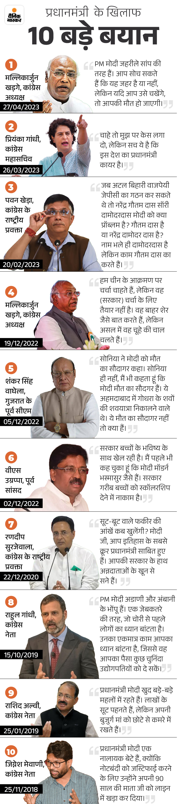 उधर, प्रधानमंत्री नरेंद्र मोदी ने कर्नाटक में तीन जनसभाएं कीं। इस दौरान उन्होंने कांग्रेस अध्यक्ष मल्लिकार्जुन खड़गे की जहरीले सांप वाली टिप्पणी पर निशाना साधा। PM ने कहा कि मुझे कांग्रेस के लोगों ने 91 बार गालियां दीं। गालियों के शब्दकोष में टाइम खराब करने के बजाय अगर कांग्रेस ने इतनी मेहनत गुड गवर्नेंस में की होती तो इनकी इतनी दयनीय स्थिति नहीं होती।