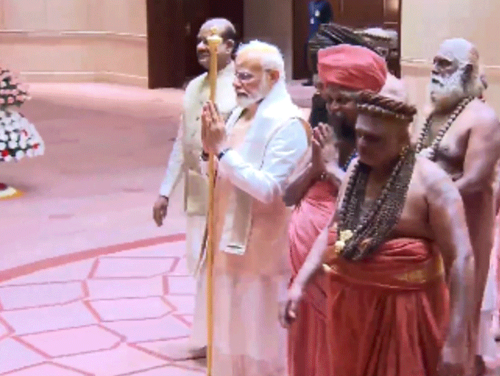 प्रधानमंत्री नरेंद्र मोदी ने नए संसद भवन का इनॉगरेशन किया। उन्होंने सेंगोल को साष्टांग प्रणाम कर इसे सदन में स्पीकर की कुर्सी के बगल में स्थापित किया। वहीं राहुल गांधी का कहना है कि प्रधानमंत्री संसद भवन के उद्घाटन को राज्याभिषेक समझ रहे हैं।