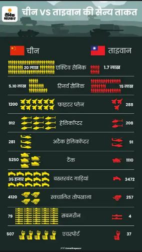 - यूक्रेन पर रूस के हमले के बाद इस बात की आशंका बहुत ज्यादा बढ़ गई थी कि ताइवान को अपना हिस्सा बता चीन उस पर हमला कर सकता है। मगर अमेरिका खुले मंच पर यह कह चुका है कि अगर ताइवान पर हमला होता है तो वह उसकी मदद के लिए सेना भेजेगा।