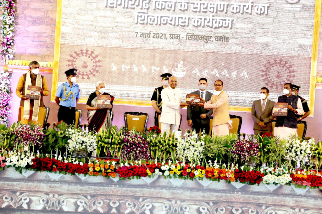 राष्ट्रपति श्री रामनाथ कोविंद की उपस्थिति में मुख्यमंत्री श्री शिवराज सिंह ने दमोह में आयोजित जनजातीय सम्मेलन में जनजातीय कार्य विभाग के प्रकाशन ‘बानगी’ का विमोचन किया। ‘बानगी’ पुस्तिका मध्यप्रदेश की जनजातीय विरासत, विकास और सफल गाथाओं पर केन्द्रित है। मुख्यमंत्री श्री चौहान ने विमोचन के बाद पुस्तक की प्रथम प्रति राष्ट्रपति श्री रामनाथ कोविन्द को भेंट की। इस अवसर पर राज्यपाल श्रीमती आनंदीबेन पटेल, केंद्रीय राज्य मंत्री (स्वतंत्र प्रभार) श्री प्रहलाद पटेल और केन्द्रीय राज्य मंत्री श्री फग्गन सिंह कुलस्ते, जनजाति और अनुसूचित जाति कल्याण मंत्री सुश्री मीना सिंह, नगरीय विकास मंत्री श्री भूपेंद्र सिंह सहित विधायकगण, प्रमुख सचिव श्रीमती पल्लवी जैन गोविल, संचालक टीएडीपी सुश्री शैलबाला मार्टिन अन्य प्रशासनिक अधिकारी और बड़ी संख्या में जनजाति समुदाय के लोग मौजूद थे।