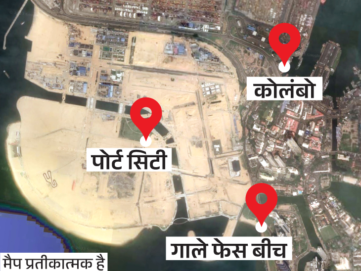 श्रीलंका की राजधानी कोलंबो के मशहूर गाले फेस बीच से कुछ दूर बड़ी-बड़ी मशीनें काम में जुटी हैं। पहले यहां समुद्र था, जिसका 665 एकड़ एरिया रेत और मिट्टी डालकर पीछे खिसका दिया गया। यहां कोलंबो पोर्ट सिटी बन रही है। 1 अरब 40 करोड़ अमेरिकी डॉलर में तैयार हो रहे इस शहर का पूरा खर्च चीन उठा रहा है। बदले में उसे यहां की 43% जमीन 99 साल के लिए लीज पर मिलेगी।