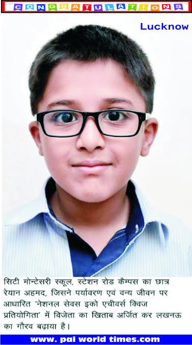 लखनऊ। सिटी मोन्टेसरी स्कूल, स्टेशन रोड कैम्पस के कक्षा-3 के छात्र रेयान अहमद ने पर्यावरण एवं वन्य जीवन पर आधारित ‘नेशनल सेवस इको एचीवर्स क्विज प्रतियोगिता’ में विजेता का खिताब अर्जित कर लखनऊ का गौरव बढ़ाया है। इस उपलब्धि हेतु रेयान को प्रशस्ति पत्र व नगद पुरस्कार प्रदान कर सम्मानित किया गया। सी.एम.एस. संस्थापक डा. जगदीश गाँधी ने विद्यालय के इस मेधावी छात्र को आशीर्वाद देते हुए उज्जवल भविष्य की कामना की है।यह प्रतियोगिता सेवल वाइल्ड लाइफ मैगजीन एवं रोटरी क्लब ऑफ एलाइट लखनऊ के संयुक्त तत्वावधान में आयोजित हुई, जिसमें विभिन्न प्रतिष्ठित विद्यालयो के छात्रों की कड़ी प्रतिस्पर्धा के बीच सी.एम.एस. के होनहार छात्र ने विजेता होने का गौरव हासिल किया। अब यह छात्र राष्ट्रीय स्तर की क्विज प्रतियोगिता में लखनऊ का प्रतिनिधित्व करेगा। प्रतियोगिता में सी.एम.एस. के इस प्रतिभाशाली छात्र ने न सिर्फ पर्यावरण एवं वन्य जीवन से सम्बन्धित प्रश्नों के उत्तर बड़ी ही तीव्रता, स्पष्टता तथा सारगर्भित ढंग से देकर अपने ज्ञान-विज्ञान, तार्किक क्षमता व आत्मविश्वास का शानदार प्रदर्शन किया अपितु स्वच्छ पर्यावरण एवं घटते वन्य क्षेत्र के कारण वन्यजीवों पर पड़ने वाले दुष्प्रभाव का भी संदेश दिया।सी.एम.एस. सदैव ही विभिन्न रचनात्मक एवं सृजनात्मक प्रतियोगिताओं के माध्यम से अपने छात्रों की बहुमुखी प्रतिभा को निखारने के साथ ही जीवन में आगे ही आगे बढ़ने हेतु प्रोत्साहित करता रहता है। सी.एम.एस. का लक्ष्य बच्चों को वर्ल्ड लीडर के रूप में तैयार करने वाली शिक्षा उपलब्ध कराना है ताकि वे कल के विश्वव्यापी समाज का नेतृत्व अपने विकसित मानवीय दृष्टिकोण से कर सके।