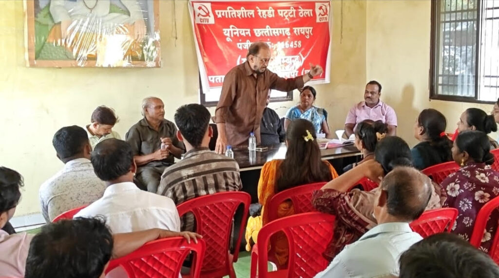 रायपुर (छत्तीसगढ़)। प्रगतिशील रेहड़ी पट्टी ठेला यूनियन (सीटू) की महादेवघाट इकाई का पहला सम्मेलन 28 अक्टूबर को बी सान्याल नगर (मेहर भवन) में सम्पन्न हुआ। सम्मेलन का उद्घाटन छत्तीसगढ़ सीटू के अध्यक्ष सोमनाथ बनर्जी ने सीटू का झंडा फहरा कर किया।