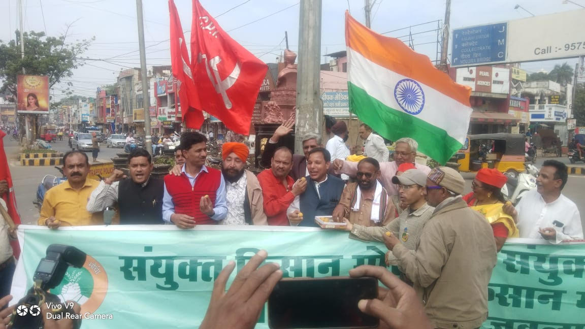 *आज संयुक्त किसान मोर्चा जबलपुर द्वारा भी मालवीय चौक में किसान विरोधी कानून वापस लिए जाने की घोषणा पर मिठाई बांटकर खुशी का इजहार किया।*उक्त अवसर पर मोर्चा के प्रमुख रूप से सुबोध रिछारिया, अमित पांडे, राम रतन यादव, डाॅ घनश्याम यादव, एड रामकिशोर शिवहरे, एड राजेंद्र गुप्ता, बैजनाथ कुशवाहा, राजकुमार सिन्हा, एड ओ पी यादव, एड अन्जना कुररिया, डॉ भावना दीक्षित, दीपक पचौरी, रामराज पटेल, विवेक पटेल, अभिलाषा दीक्षित, आर.के.जैन, बलराज सिंह, देवेंद्र शुक्ला, गुरजीत सिंह, अजय, कृष्णा चौधरी, शिव चौधरी, मदन शर्मा, राजू विश्वकर्मा व किसान भाई उपस्थित रहे।