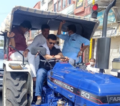 किसान विरोधी कानून वापस लेने की मांग करने ट्रेक्टर पर सवार हो सांसद कार्यालय पहुंचे कांग्रेसी विधायक ..!