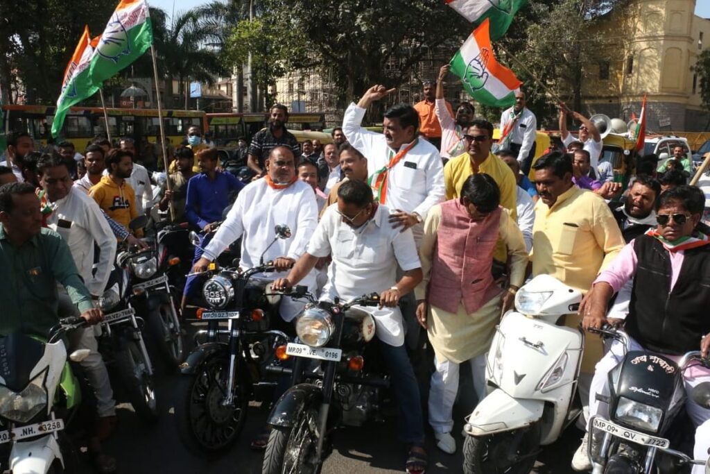 यहां रीगल पर विरोध जताने के लिए कांग्रेसियों ने क्रिकेट मैच खेला। प्रधानमंत्री माेदी का मुखौटा लगाकर बाइक को रस्सी से बांधकर सड़क पर खींचा। वहीं, एमजी रोड थाना क्षेत्र में भी एक दुकान को बंद करवाने के दौरान बहस हो गई। कांग्रेसियों ने दुकानदार को दुकान बंद नहीं करने पर बीजेपी का भक्त कह डाला। वहीं दुकानदार हाथ जोड़कर रोजी-रोटी कमाने की दुहाई देता रहा। इसके पहले पूर्व मंत्री व विधायक जीतू पटवारी ने हाथ जोड़कर दुकानें बंद करने की अपील की। पेट्रोल पंप भी एहतियात के तौर पर सुबह 9 बजे बंद कर दिए गए थे। आवश्यक वस्तुएं पूरी तरह से मिलती रहीं।