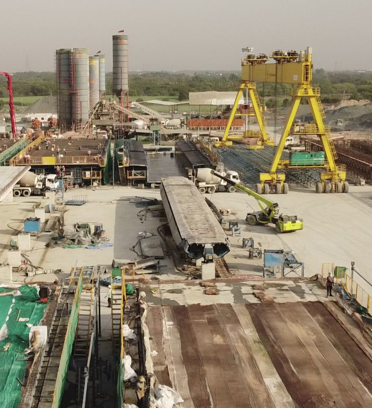 अहमदाबाद से मुंबई की ओर बढ़ते हुए हमारा पहला पड़ाव साबरमती से 80 किलोमीटर दूर आणंद जिले का कास्टिंग यार्ड था। यहां 28 अक्टूबर, 2021 को 40 मीटर लंबे बॉक्स गर्डर बनने शुरू हुए थे। इन्हें फुल स्पैन गर्डर भी कहते हैं। लगभग 970 टन वजनी ये गर्डर भारत में बन रहे सबसे भारी कॉन्क्रीट बॉक्स गर्डर हैं।
