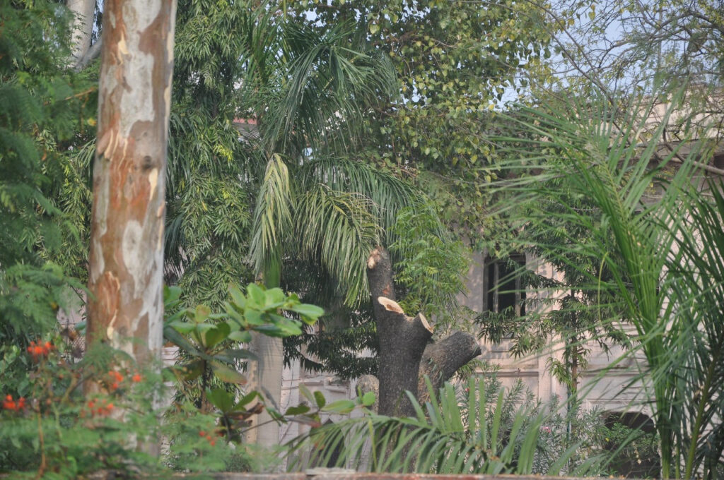 कर्मचारियों के विरोध के बाद बचा नीम का पेड- भवन के पीछे कई पेड जड से काट दिए