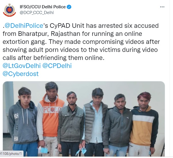दिल्ली पुलिस ने सेक्सटॉर्शन जैसे क्राइम को अंजाम देने वाले 6 लोगों को गिरफ्तार करने के साथ लोगों को ऐसे मामलों में रिपोर्ट करने को भी कहा था। DCP साइबर पुलिस ने ट्विटर अकांउट के जरिए ये सुरक्षा टिप्स साझा किए थे:-