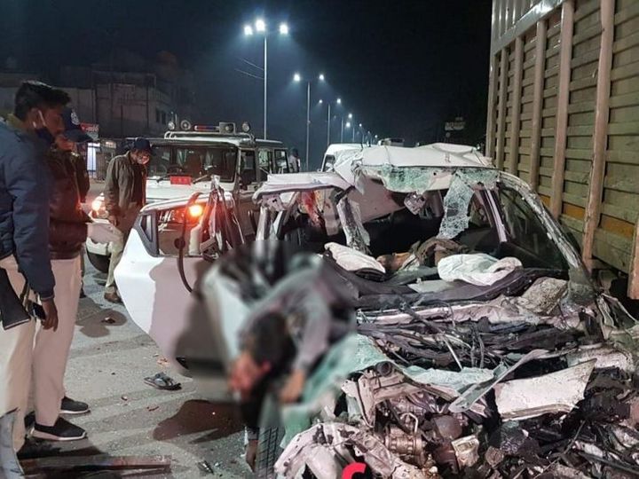 सोमवार रात 1 बजे शहर के निरंजनपुर चौराहे के पास एक तेज रफ्तार कार सड़क किनारे खड़े टैंकर में जा घुसी। कार में 6 दोस्त बैठे थे। हादसा इतना भीषण था कि कार के परखच्चे उड़ गए। 4 दोस्तों की माैके पर ही माैत हाे गई। किसी का हाथ तो किसी का सिर कटकर शरीर से लटक गया। गंभीर रूप से घायल दो और दोस्तों ने भी कुछ देर बाद दम तोड़ दिया। गैस कटर से कार को काटकर शव निकाले गए। सभी दोस्त पार्टी करके देवास की ओर से लौट रहे थे। बताया जाता है कि सभी नशे में थे।