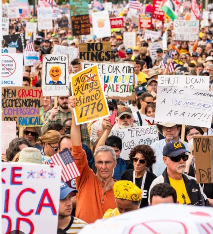 वाशिंगटन डी.सी., न्यूयॉर्क, बोस्टन, शिकागो, अटलांटा आदि जैसे प्रमुख शहरों सहित सभी 50 राज्यों में 2,700 स्थानों पर हुए इन विरोध प्रदर्शनों का आयोजन आम नागरिकों के एक गठबंधन द्वारा किया गया था। “नो किंग्स” आंदोलन सभी दमनकारी और तानाशाह शासकों के विरोध में खड़ा है, और प्रत्यक्ष लोकतंत्र और पारस्परिक सहायता के सिद्धांतों पर आधारित है। यहाँ तक कि द न्यू यॉर्क टाइम्स ने भी इन विरोध प्रदर्शनों पर रिपोर्ट करते हुए कहा, “ज़्यादातर जगहों पर माहौल (ट्रंप के प्रति) असम्मानजनक था, लेकिन शांतिपूर्ण और परिवार-अनुकूल था। बहरहाल, सभी उद्देश्य स्पष्ट था। हर जगह, हर भीड़ ने एक ही मंत्र साझा किया : कोई राजा नहीं।” संदेश स्पष्ट था, ‘अमेरिका का कोई राजा नहीं होगा।’