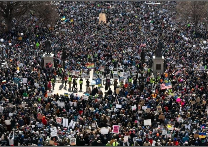 इस संघर्ष की गूंज सीनेटर बर्नी सैंडर्स द्वारा प्रभावशाली ढंग से व्यक्त की गई, जिन्होंने विरोध प्रदर्शन में बोलते हुए, इस आंदोलन की तुलना 1776 की अमेरिकी क्रांति से की। उन्होंने भीड़ को याद दिलाया कि एक समय लोगों को राजा के शासन से मुक्त होने के लिए पृथ्वी की सबसे शक्तिशाली सेना से लड़ना पड़ा था।