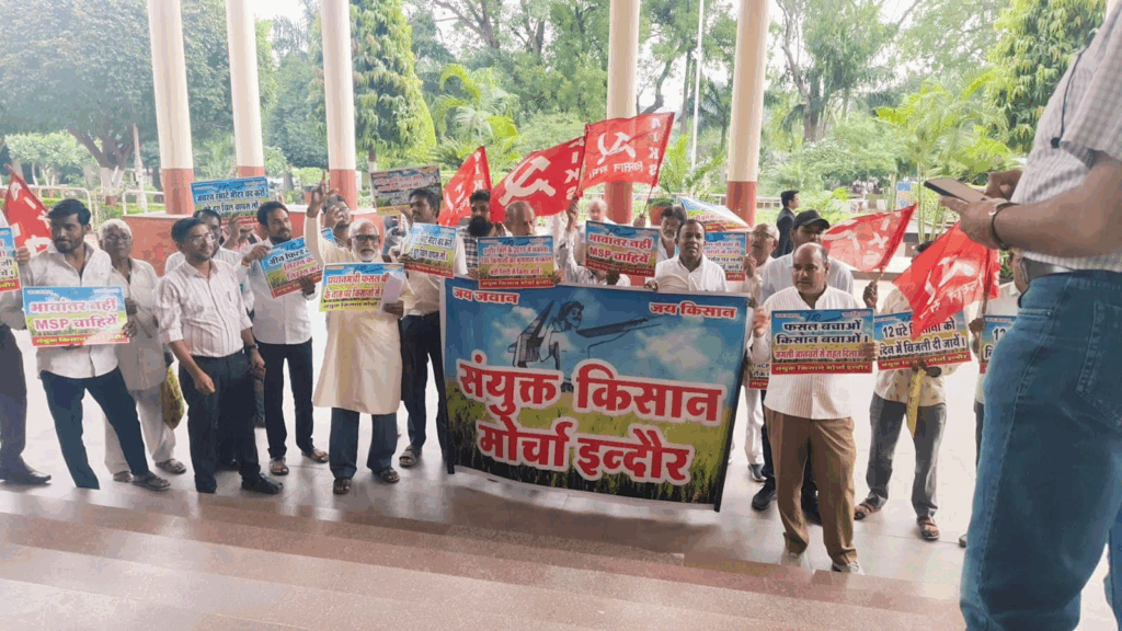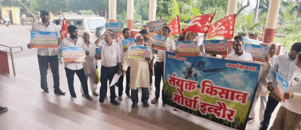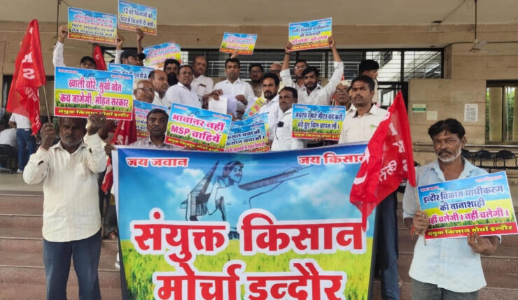 इंदौर। किसानों की समस्याओं के प्रति सरकार की बेरुखी के खिलाफ आज पूरे प्रदेश में संयुक्त किसान मोर्चा के आव्हान पर किसानों ने प्रदर्शन कर ज्ञापन दिए । उसी के तहत इंदौर में भी कलेक्टर कार्यालय पर विभिन्न किसान संगठनों से जुड़े किसानों ने प्रदर्शन कर प्रदेश और स्थानीय स्तर की मांगों का ज्ञापन सोपा । मुख्यमंत्री के नाम सोफे गए ज्ञापन में किसान संगठनों ने चेतावनी दी है कि यदि सरकार ने किसानों की समस्याओं के प्रति बेरुखी कायम रखी तो 27 अक्टूबर को प्रदेश के कोने-कोने से हजारों किसान भोपाल पहुंचकर मुख्यमंत्री निवास का घेराव करेंगे।