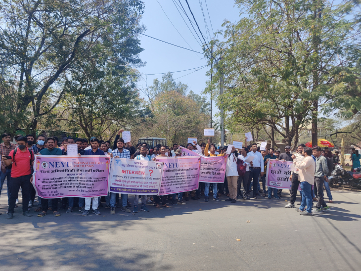 सोमवार दोपहर करीब साढ़े 12 बजे से कैंडिडेंट्स आयोग ऑफिस के बाहर जमा होने लगे। 1 बजे नेशनल एजुकेटेट यूथ यूनियन के बैनर तले प्रदर्शन शुरू किया। हाथों में बैनर पोस्टर लेकर जमकर नारेबाजी की। जिसके बाद वे धूप में ही सड़क पर बैठ गए और फिर नारेबाजी करने लगी।