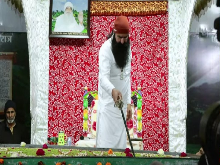 पैरोल पर छूटे राम रहीम ने तलवार से केक काटा:5 घंटे ऑनलाइन सत्संग किया; CM के OSD, भाजपा के MP-MLA भी जुड़े