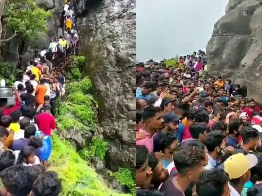 महाराष्ट्र में कोरोना संक्रमित मरीजों की संख्या में पिछले कुछ दिनों के दौरान भारी कमी देखने को मिल रही है। यहां बारिश का मौसम भी जारी है। इस मौसम में बड़ी संख्या में लोग राज्य के पर्यटन स्थलों पर घूमने के लिए जाते हैं। संक्रमण की तीसरी लहर के खतरे को देखते हुए राज्य में ऐसे स्थलों पर जाने की पाबंदी है, इसके बावजूद हजारों की संख्या में लोग रविवार को यहां घूमने के लिए पहुंचे।