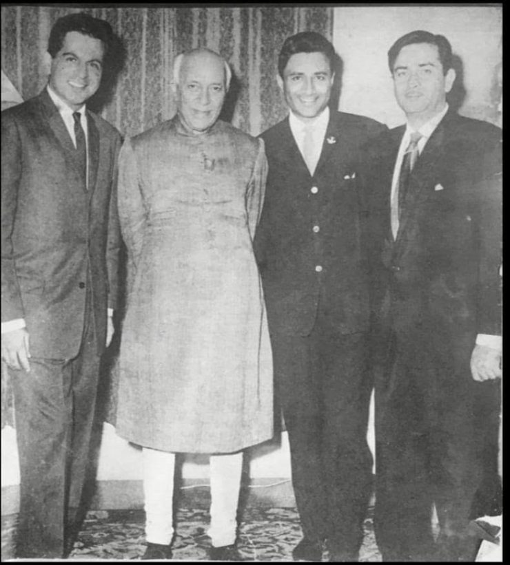 मेरी उन से अख़िर मुलाक़ात गर्मजोशी और निजता से भरपूर थी. फ़िल्म जगत ने प्रधानमंत्री फंड के लिये एक शो किया और पंडित जी भी वहीं थे. पण्डित जी उस वक़्त गम्भीर हो गये जब लता जी ने “ ऐ मेरे वतन के लोगों ज़रा आँख में भर लो पानी जो शहीद हुए हैं उनकी ज़रा याद करो क़ुर्बानी” यह गीत नेहरू जी का पसंदीदा गीत था. लता जी भी अपने सारे प्रोग्राम इसी गीत से शुरू करती थी. वैसे भी यह गीत देश भक्ति से ओतप्रोत हैं. प्रोग्राम के बाद उस समय की मशहूर तिकड़ी की मुलाक़ात जो काफ़ी निजी थी, पंडित जी से हुई. तिकड़ी से मेरा मतलब दिलीप साहब, राजकपूर जी देवानंद यानि मैं, हमें तीन मूर्ति भवन की तरफ़ सेना के मोटरसाइकिलों के साथ हमारी ‘लिमोजीन’ कार पहुँची. पंडित जी की बेटी इन्द्रा जी ने हमारी रहनुमाई की उस वक़्त इन्दिरा जी घरेलू और शर्मीली थी.