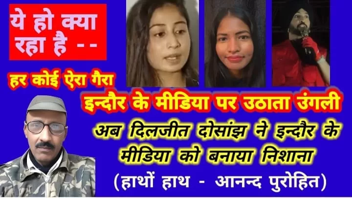 विगत कुछ समय से पता नहीं क्या हो गया है इन्दौरी मीडिया को कि हर कोई ऐरा गैरा चाहे जब इस पर उंगली उठा इसे कटघरे में खड़ा कर देता है। सोचना मीडिया वालों को भी चाहिए और अपने आचरण में बदलाव लाना चाहिए…. क्योंकि किसी भी मीडिया सुर्खी पर आजकल संबंधित उस पर ही उंगली उठाने लगता है, शायद फैशन सा बन गया है आजकल…. लेकिन सिर्फ फैशन नहीं कहीं न कही मीडिया की भी कोई कमजोर कड़ी, कमजोर नस दिखाई देती है उन ऊंगली उठाने वालों को तभी तो ये बिना जाने समझे तड से मीडिया की और उंगली तान उसे कटघरे में खड़ा करते हैं… करना होगा विचार मीडिया को। दिलजीत के पहले भी इन्दौर में…. वो चौराहे पर नाचने वाली लड़की… और छपन्न पर अर्द्धनग्न घूमती युवती ने भी मीडिया को निशाना बनाया था।…. नेताओं की बात तो छोड़िए साहब।… अब ये दिलजीत भी इन्दौर के मीडिया पर उंगली उठा रहा… बगैर कुछ समझें जाने।