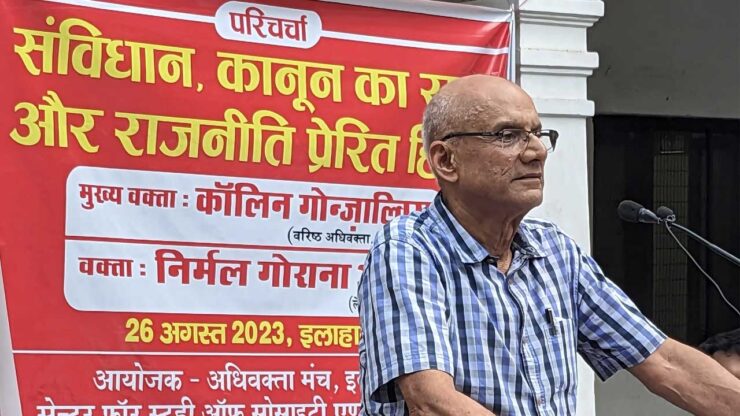 “न्यायपालिका का काम शक्तिशाली व्यक्ति, समूह और सरकार से व्यक्ति के अधिकारों की रक्षा करना और यह सुनिश्चित करना है कि लोकतंत्र की जगह किसी एक व्यक्ति या समूह की तानाशाही न ले ले। मूल अधिकारों की रक्षा में न्यायपालिका की भूमिका भारत के लोकतांत्रिक ताने बाने को बनाए रखने के लिए महत्वपूर्ण है। क़ानून के शासन के सिद्धांत के तहत न्यायपालिका का काम क़ानून के शासन की रक्षा और क़ानून की सर्वोच्चता को सुनिश्चित करना है। उपरोक्त पैमाने पर क्या मौजूदा समय में न्यायपालिका खरी उतरती है?” ये बातें वरिष्ठ अधिवक्ता और ह्युमन राइट लॉ नेटवर्क के संस्थापक निदेशक कॉलिन गोंज़ाल्विस ने गत 26 अगस्त, 2023 को इलाहाबाद में आयोजित एक परिचर्चा को संबोधित करते हुए कही। परिचर्चा का विषय था– ‘संविधान, कानून का राज और राजनीति [से] प्रेरित हिंसा’।