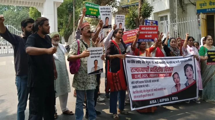 ऑल इंडिया स्टूडेंट्स एसोसिएशन (आइसा), अखिल भारतीय प्रगतिशील महिला एसोसिएशन (ऐपवा), इंकलाबी नौजवान सभा (आरवाईए) द्वारा राज्यव्यापी विरोध प्रदर्शन के तहत जिलाधिकारी कार्यालय प्रयागराज पर विरोध प्रदर्शन करते हुए यूपी के मुख्यमंत्री योगी आदित्यनाथ को ज्ञापन सौंपा। लखनऊ विश्वविद्यालय की सहायक आचार्य डॉ. माद्री काकोटी (मेदुसा) के खिलाफ जारी किए गए कारण बताओ नोटिस और प्रसिद्ध लोक गायिका नेहा सिंह राठौर पर दर्ज की गई झूठी एफआईआर को रद्द करने की मांग की है। यह अभिव्यक्ति की स्वतंत्रता और असहमति के लोकतांत्रिक अधिकार पर फासीवादी हमला है।