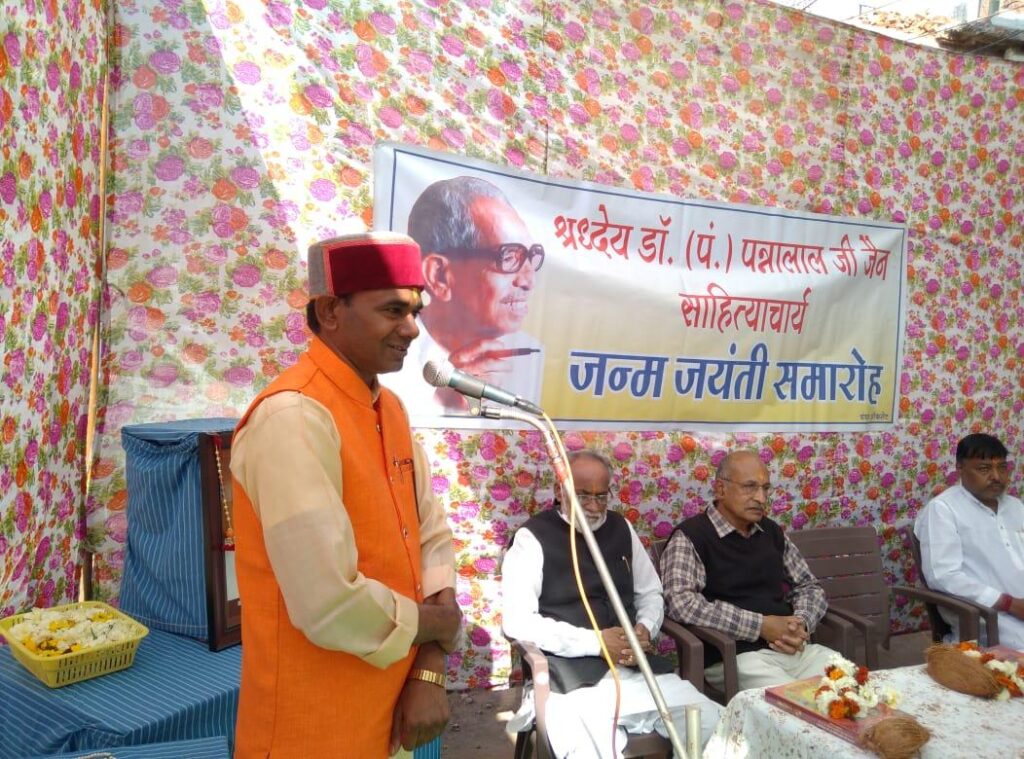कार्यक्रम का संचालन अशोक जैन पिडरुआ ने किया, आभार डॉ. राजेश जैन ने व्यक्त किया।  डॉ. पन्नालाल साहित्याचार्य का जन्म सागर जिला के पारगुवां ग्राम में 5 मार्च 1911 को हुआ। पिता का बाल्यावस्था में स्वर्गवास होने के कारण उनकी माता श्रीमती जानकी बाई 7-8 वर्ष की आये में सागर लेकर आ गईं। यहाँ उन्हें पूज्य सन्त गणेश प्रसाद जी वर्णी का सान्निध्य मिला। उनकी शिक्षा उन्हीं के मार्गदर्शन में हुई। सन् 1936 में साहित्याचार्य की उपाधि प्राप्त कर जैन समाज के प्रथम साहित्याचार्य बने। पूज्य वर्णी जी के प्रति उनकी बहुत आस्था रही। उनके आदेश पर आपने श्री गणेश वर्णी दि. जैन संस्कृत महाविद्यालय